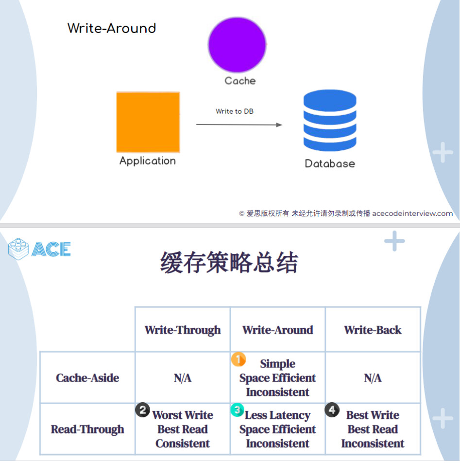 Write around 虽然在写的路径上不会更新 Cache,但在读的路径上会更新 Cache。当 Cache 背后的数据再次被重新写了以后,因为是 Write around,所以不会通知 Cache 这次更新。再次读的时候就会出现读到 Cache 里的旧数据的问题。